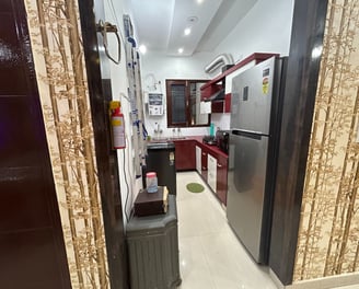 11) Modular kitchen fully loaded with utensils, 4 burner Gas Stove, Chimney.